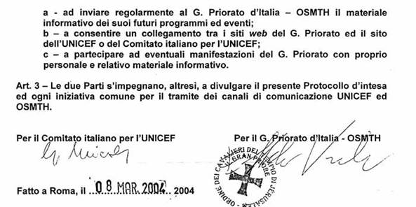 PROTOCOLLO DI COOPERAZIONE CON L’UNICEF